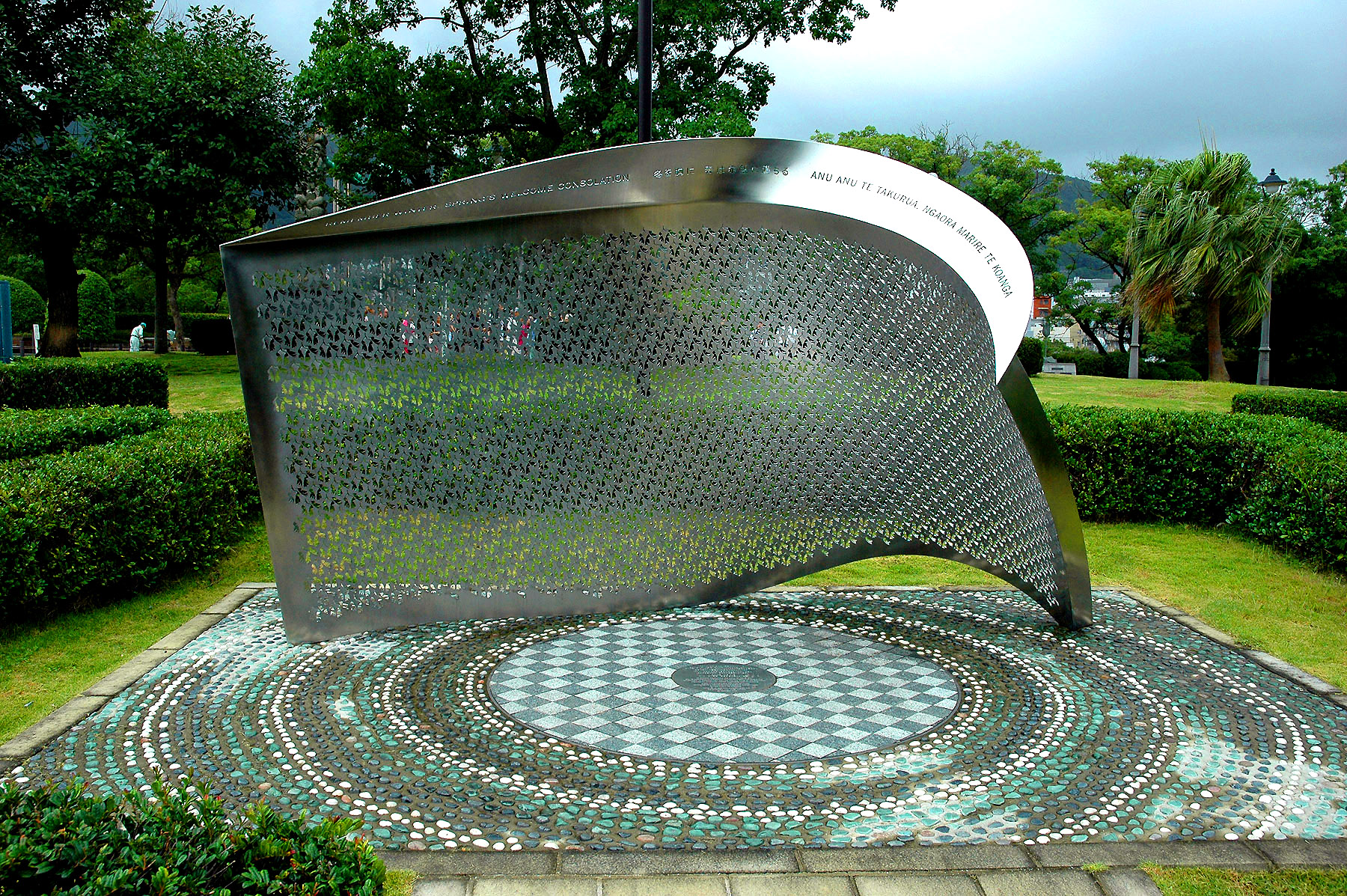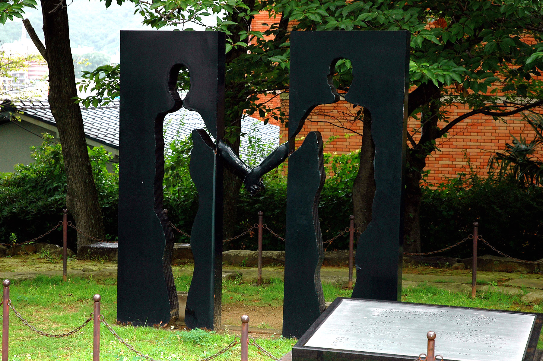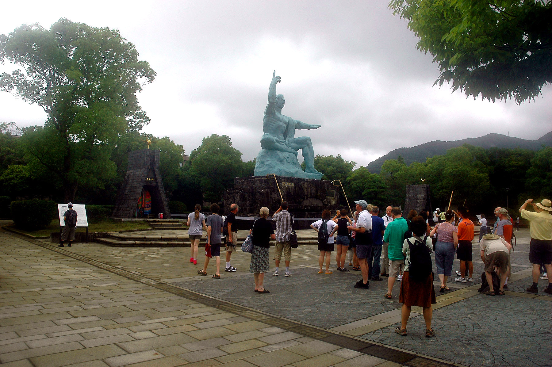 STATUE AT THE ENTRANCE TO THE NAGASAKI ATOMIC MUSEUM AND PEACE PARK
